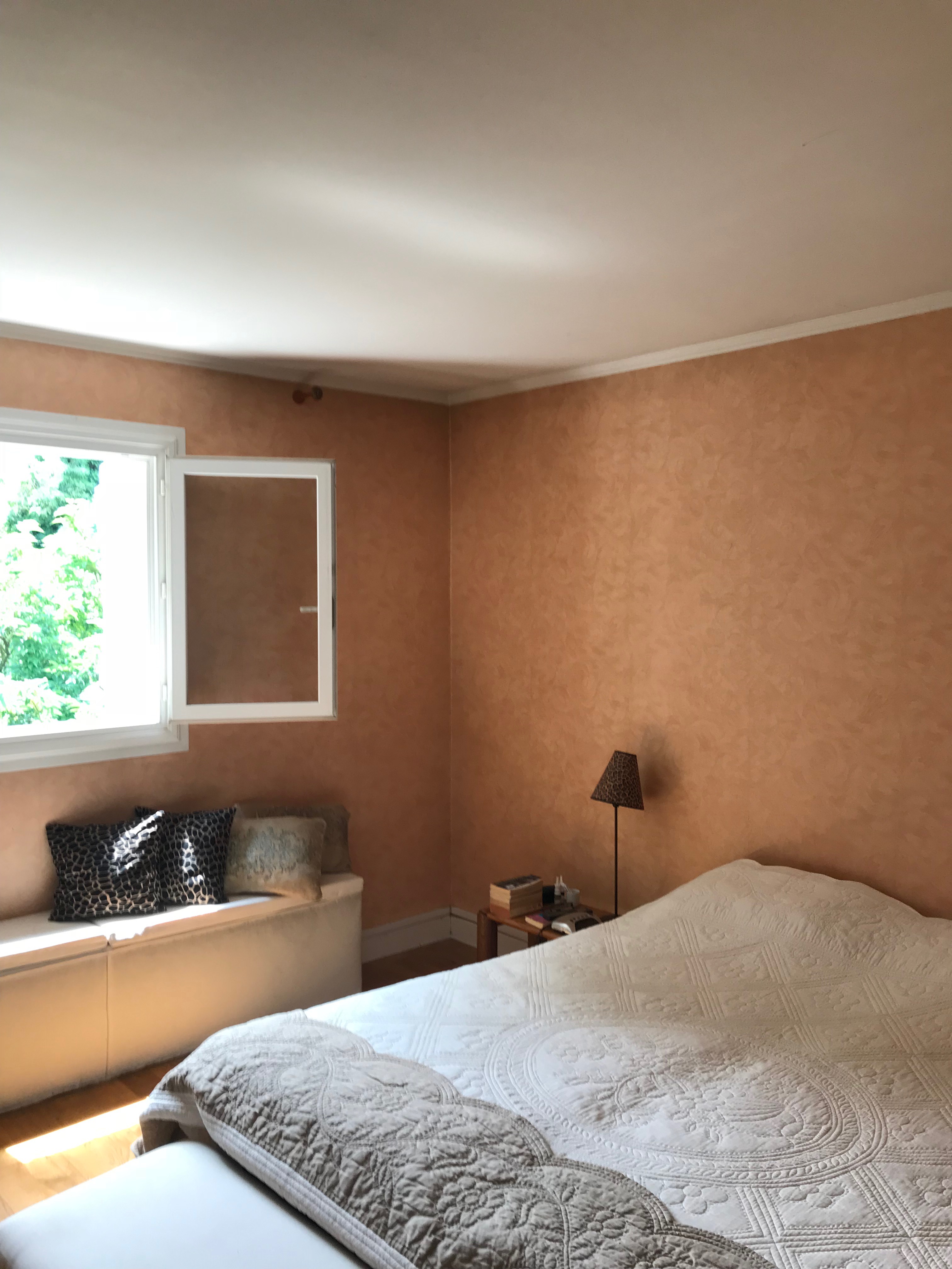 Pour les murs c'est la routine détapissage, rebouchage, sous couche, peinture bleu pour la tête de lit façon alcôve et pastel pour le reste.